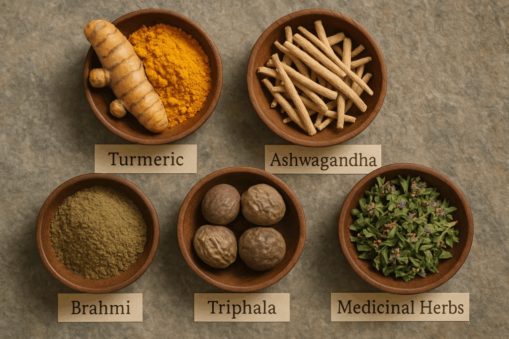 Herbs are central to Ayurvedic treatment, with thousands of medicinal plants used either individually or in formulations: