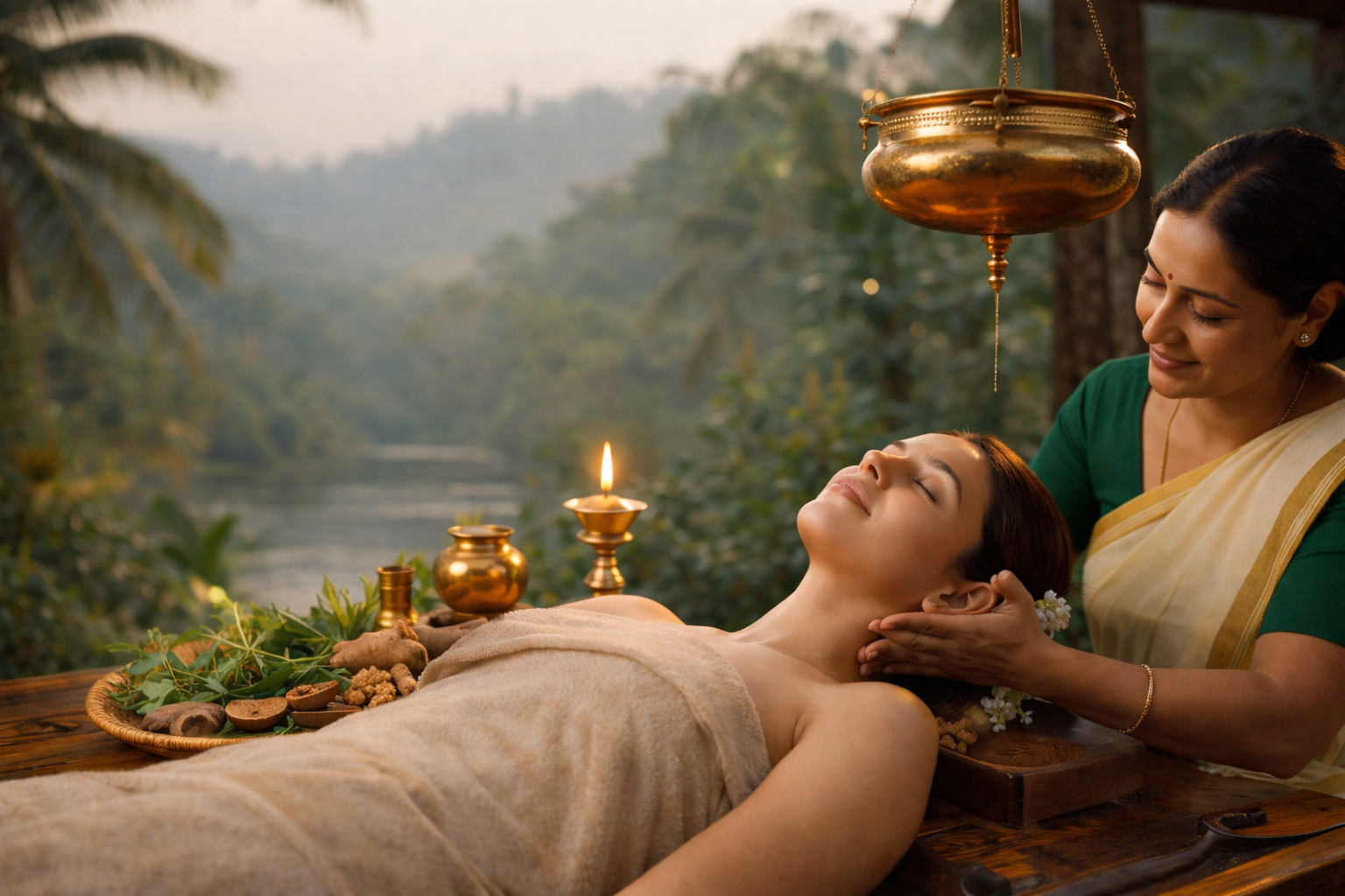 Serene Mountain Retreat: Wayanad's tranquil environment amplifies healing with pristine air, peaceful surroundings, and nature's restorative power.