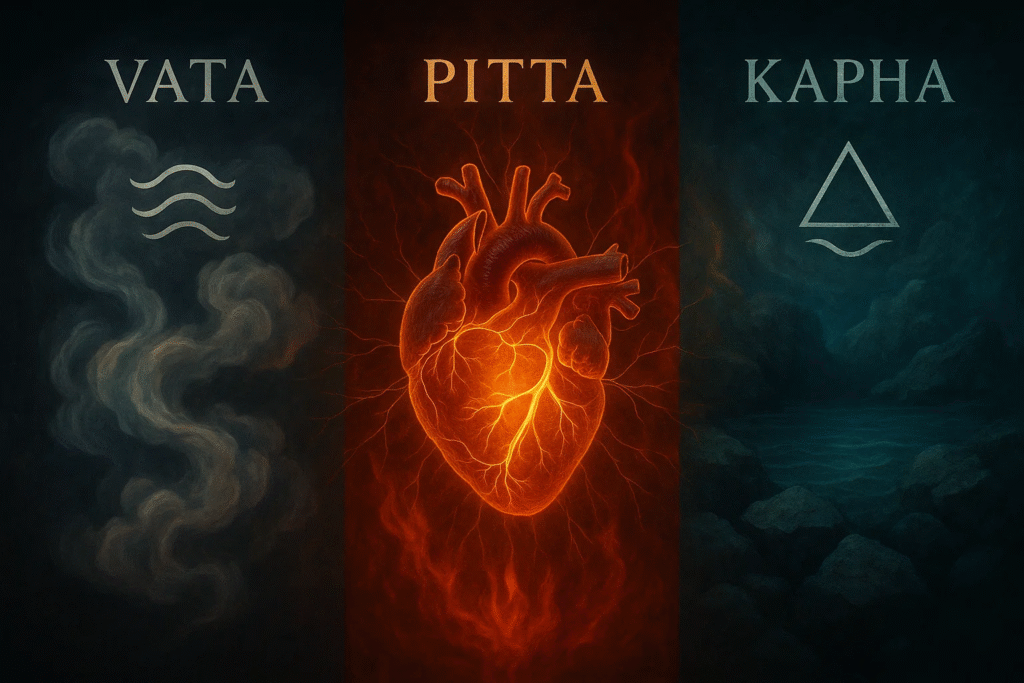 Ayurveda identifies three primary energies or doshas—Vata, Pitta, and Kapha—that when imbalanced, directly impact cardiovascular function: