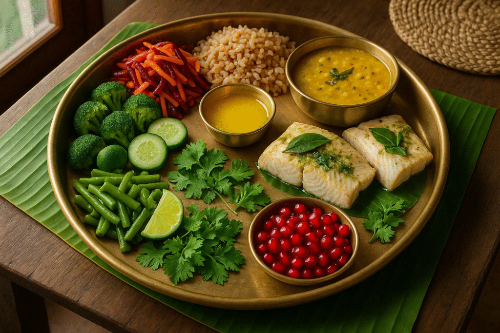 Prioritize fresh, whole foods; increase vegetables and fruits; include heart-healthy fats like ghee and nuts; add cardioprotective spices; reduce processed foods, excess salt, and refined sugars. Consuming freshly cooked meals with plenty of vegetables prevents cardiac problems.